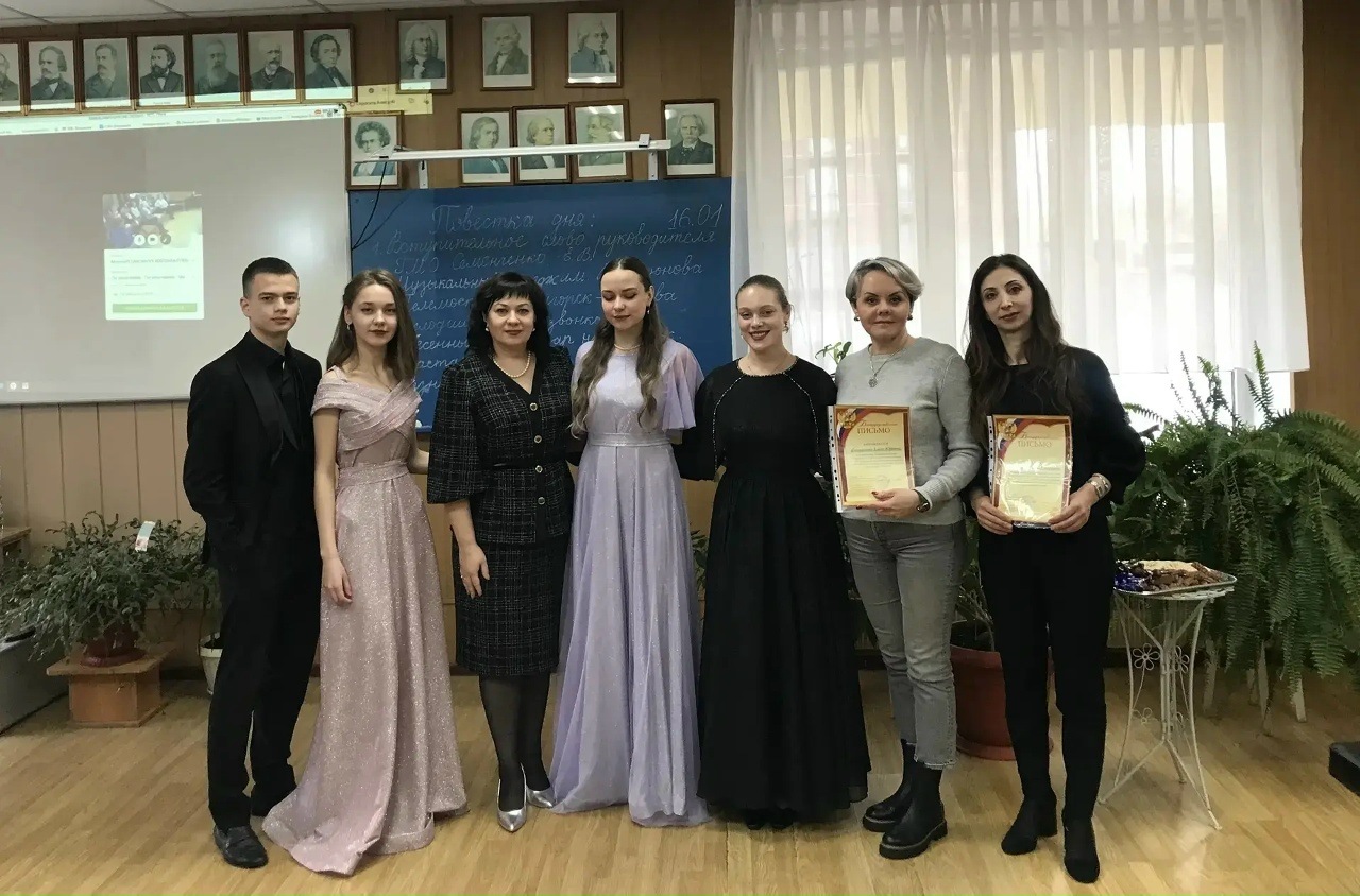 16 января в МБОУ СОШ № 27 г. Пятигорска состоялось заседание методического объединения учителей музыки города. В этом мероприятии, по приглашению заместителя директора по учебно-воспитательной работе, руководителя городского методического объединения Е.В.Семенченко, приняли участие студенты специальности Вокальное искусство класса преподавателя Е.Ю.Филимоновой, концертмейстер К.А.Агасарян, - Давид Чубенко, Софья Влахно,